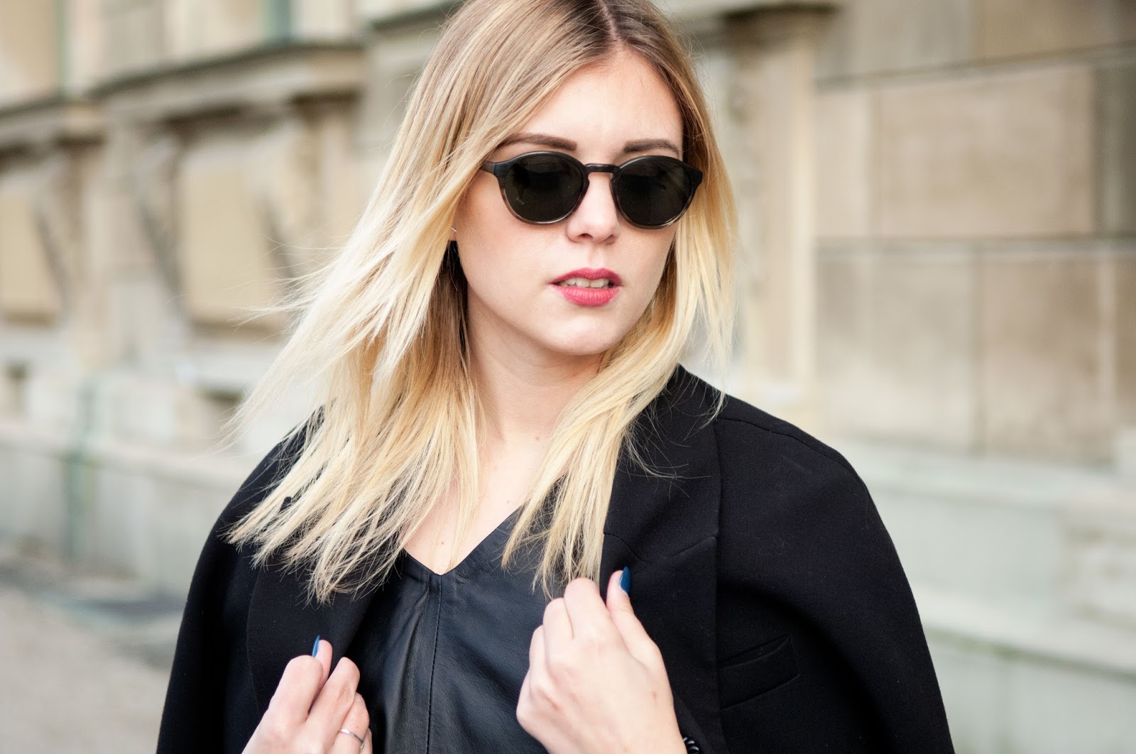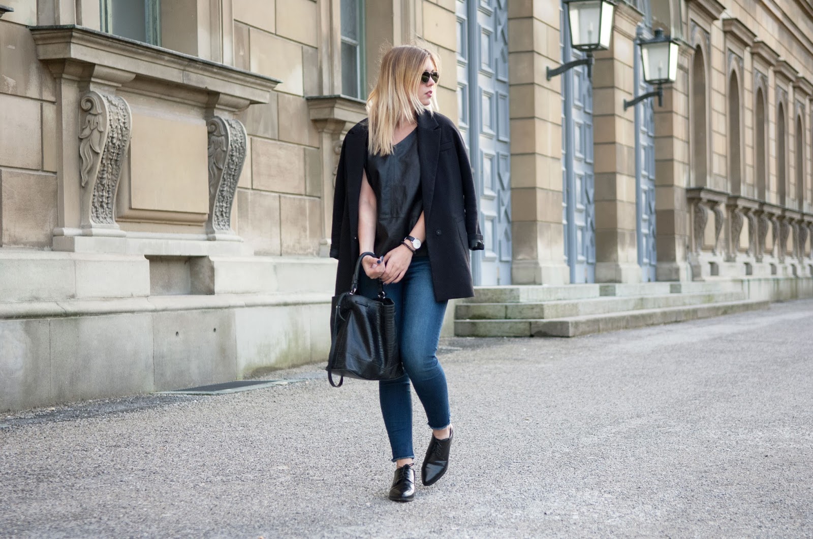 Seit meiner Kindheit hab ich ein ganz leichtes “Jeans-Trauma”. Ich war nie ein großer Fan von dieser Hose, obwohl sie so beliebt ist wie keine andere. Um das ganze zu verstehen, muss ich euch ein bisschen mehr erzählen. Ich habe in meiner Kindheit/Jugend/eigentlich bis ich 20 war geturnt. Ich hatte dadurch immer relativ kräftige Oberschenkel und das schon als Kind. Klar kommt man sich da irgendwie komisch vor, wenn alle anderen Kinds um einen herum noch wie auf Stelzen laufen während du das Gefühl hast, du schaust aus wie ein Elefant. Natürlich waren damals noch die ganz hellen Jeans im Trend, schön mit geradem Schnitt oder mit Schlag, was natürlich nicht sonderlich fördernd ist. Und so hatte ich immer das Gefühl unglaublich dicke Beine zu haben. Wenn ich mir Fotos von früher anschaue, dann stimmt das schon. Ich habe mich zurecht unwohl gefühlt. Zum Glück habe ich dann mit 15 angefangen mich für Mode zu interessieren – relativ spät eigentlich, wenn man bedenkt, dass Fashion heute mein größtes Hobby und meine ganze Leidenschaft ist. Ich habe mir zum ersten Mal dunkle Hosen gekauft, in Schwarz (wie soll es auch anders sein), in Grau und vorallem: im Röhrenschnitt. Ich habe längere Shirts getragen, die meine Oberschenkel etwas verdeckt haben und habe immer öfter zu Kleidern und Röcken gegriffen. Mittlerweile hab ich das “Jeans-Trauma” ein bisschen überwunden, auch wenn ich heute noch oft das Gefühl habe, dass meine Beine einfach viel zu dick sind. Die Hose vom heutigen Outfit musste ich aber einfach kaufen und euch zeigen. Daher auch die Frage: Can you love me again? Ja liebe Jeans. Ich kann. Der Trend mit dem ausgefransten Saum ist – zugegeben- nicht mehr ganz so neu. Aber ich finde: er gehört definitiv ins Jahr 2016. Am besten noch im 7/8-Look, der für mich als kleiner Stöpsel nicht immer ganz einfach zu tragen ist, denn die meisten Hosen in dieser Länge sind für mich eine normallange Jeans. So und um mal wieder von dem Thema mit der Jeans abzulenken komme ich noch kurz zu meinem ganzen Outfit. Ich trage nämlich auch noch Schnürschuhe, die mich sehr an die Anzugschuhe von meinem Papa erinnern. Ja, vielleicht wirken diese Art Schuhe auf manche sehr männlich, ich mag sie aber sehr gerne. Dazu trage ich ein schwarzes Ledershirt von Ottod’ame und meinen Allrounder-Blazer. Abgerundet wird das Outfit durch meine Sonnenbrille von KBL Eyewear und eine schwarze Tasche. Was haltet ihr von Jeans? Schreibt mir doch mal in die Kommentare, was ihr so denkt. Alles Liebe, Lisa