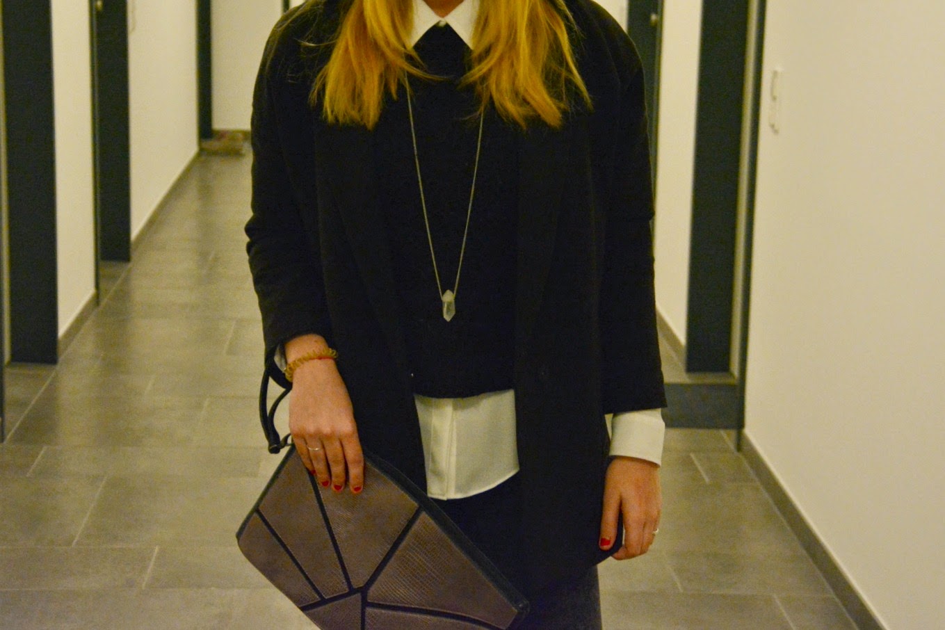 Schuhe: Zara, Hose, Jacke: h&m, Pulli: Topshop, Bluse, Tasche: Primark, Uhr: Casio, Hut: Pimkie