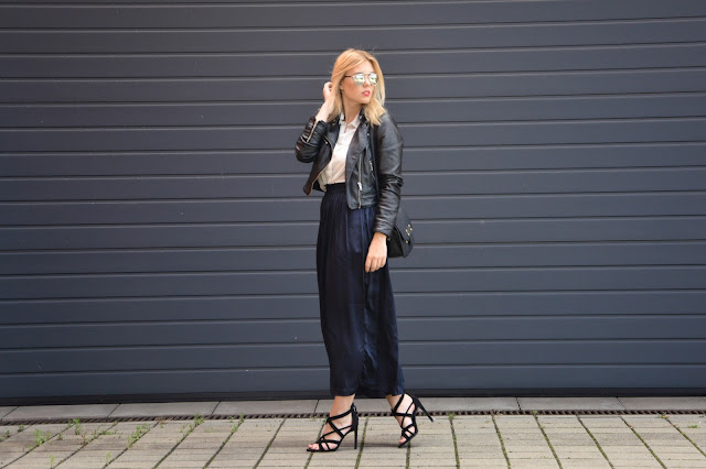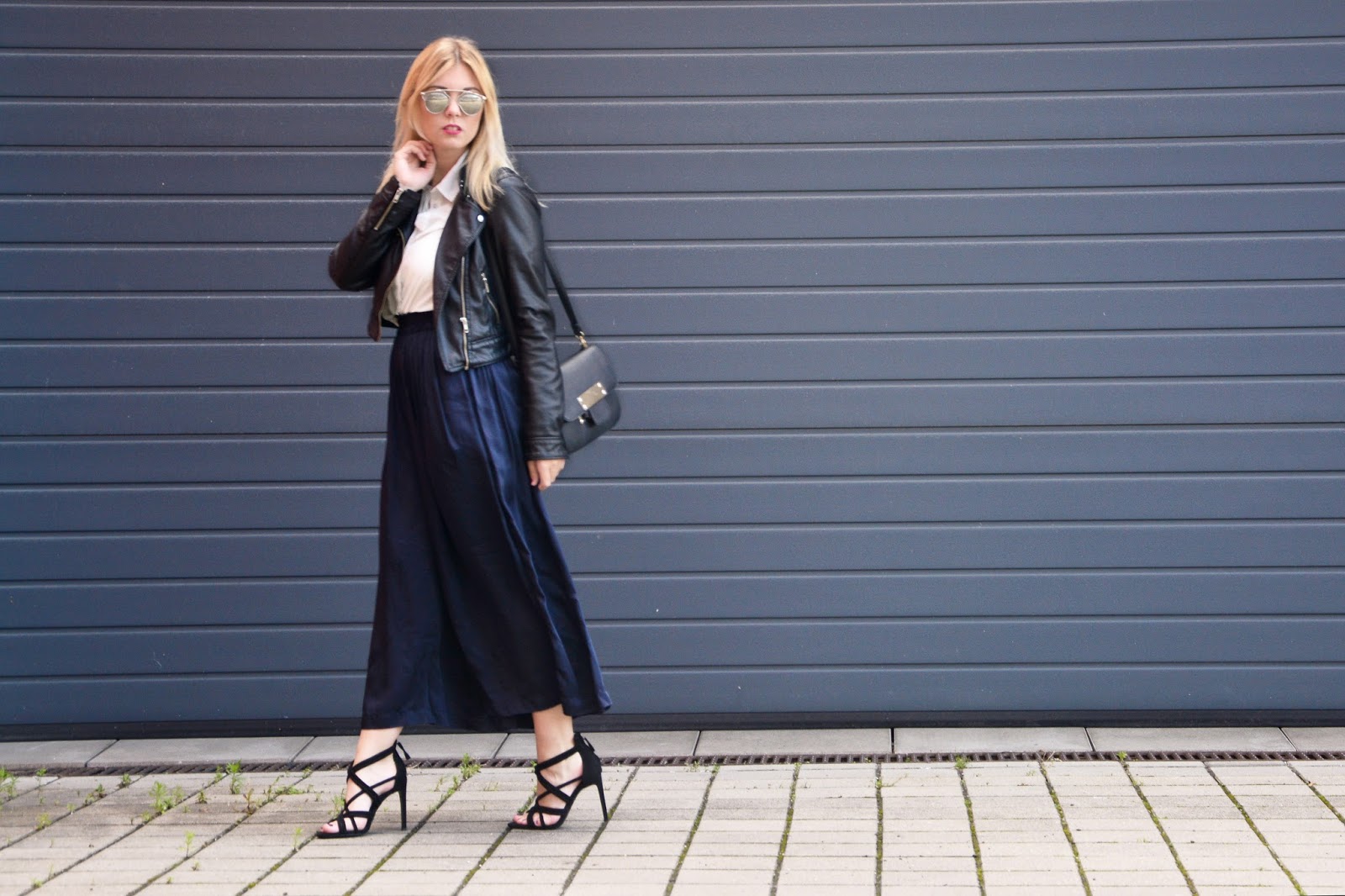Ich habe euch ja erzählt, dass meine Abschlussprüfungen ziemlich lange andauern. Zuerst gab es die Theorieprüfung zu überleben – check – dann musste ich innerhalb von 10 Werktagen eine eigenen Konzeption erstellen – check – so, soweit so gut. Diese muss ich jetzt nur noch abgeben und dann kommen noch zwei praktische Prüfungen und eine Präsentation auf mich zu, dann sollte der lange Weg geschafft sein. Für mich sind die beiden schlimmsten Sachen zum Glück schon vorbei. Zur Belohnung für meine bestandene Theorieprüfung hab ich mir dann gleich mal was gegönnt und zwar diese tolle Satin-Culotte von h&m Trend. Ich muss gestehen, ich bin ein richtiger Fan von den Trend-Teilen. Ja, diese sind zwar ein bisschen teuerer aber dafür hundert Mal schöner. Und auch von der Qualität her einfach besser. Jedenfalls zurück zur Hose: diese ist aus einem superangenehmen Satin-Stoff, der für den (vielleicht irgendwann mal aufkommenden Sommer) eigentlich perfekt ist. Ich muss sagen, dass die Farbe Dunkelblau bisher wirklich selten in meinem Kleiderschrank vorkommt und trotzdem muss ich sagen, dass ich mich langsam aber sicher wirklich dafür begeistern kann. Culottes im Allgemeinen zeichnen sich ja durch ihren weiten Schnitt aus – logisch – die heutige Hose allerdings ist extrem weit geschnitten, so dass ich am Anfang nicht sicher war, ob es sich nicht doch um einen Rock handelt. Das hat mich zu Beginn ein bisschen stutzig gemacht aber nach der ersten Anprobe waren alle Zweifel dann plötzlich verflogen und ich musste sie einfach mitnehmen. Am Donnerstag geb ich dann endlich meine Konzeption ab – und hab hoffentlich für die nächsten drei Wochen dann erstmal etwas Entspannung. Samstag geht’s für mich dann mal wieder nach Hause, Montag & Dienstag hab ich nämlich Urlaub. Ihr könnt mir gerne mal auf Snapchat folgen, ich heiße da LSBLD (wie mein ursprünglicher Blog). Ansonsten gibt’s nix mehr zu sagen, außer: Lots of Love, Lisa