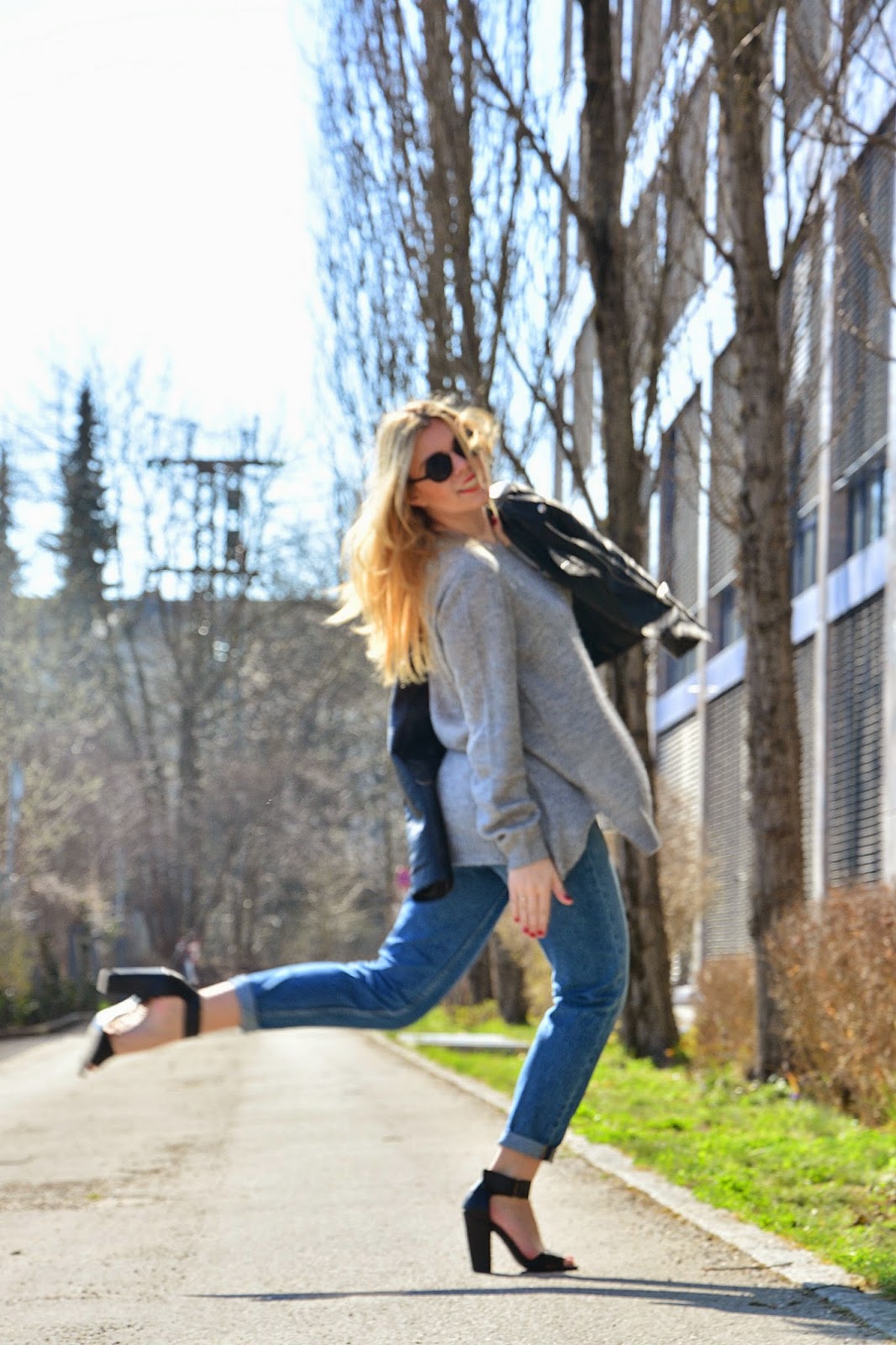 H&m hat mal wieder eine neue “Jeansart” herausgebracht, die fast genauso aussehen, wie die von Mama früher. Es gibt sie in 2 Farben, einmal in einem dunkleren blau (wie diese hier) und einem helleren. Durch ihre High Waist sitzt sie perfekt und auch sonst bin ich echt begeistert von der vielseitigen Einsatzart der Hose. Mein Liebster und ich haben uns dann heute direkt auf den Weg gemacht, um euch neue Fotos von dieser Jeans zu schießen. Schlicht kombiniert mit einem grauen Pulli & einer kurzen Kette: fertig. Das Wetter ist heute einfach zu schön, aus diesem Grund mach ich mich mal fix auf den Weg um mich mit meiner Freundin Laura zu treffen. Es geht (wie sollte es an einem Samstag auch sein) natürlich wieder in Richtung Flohmarkt. Ich wünsche euch einen supersonnigen Samstag!