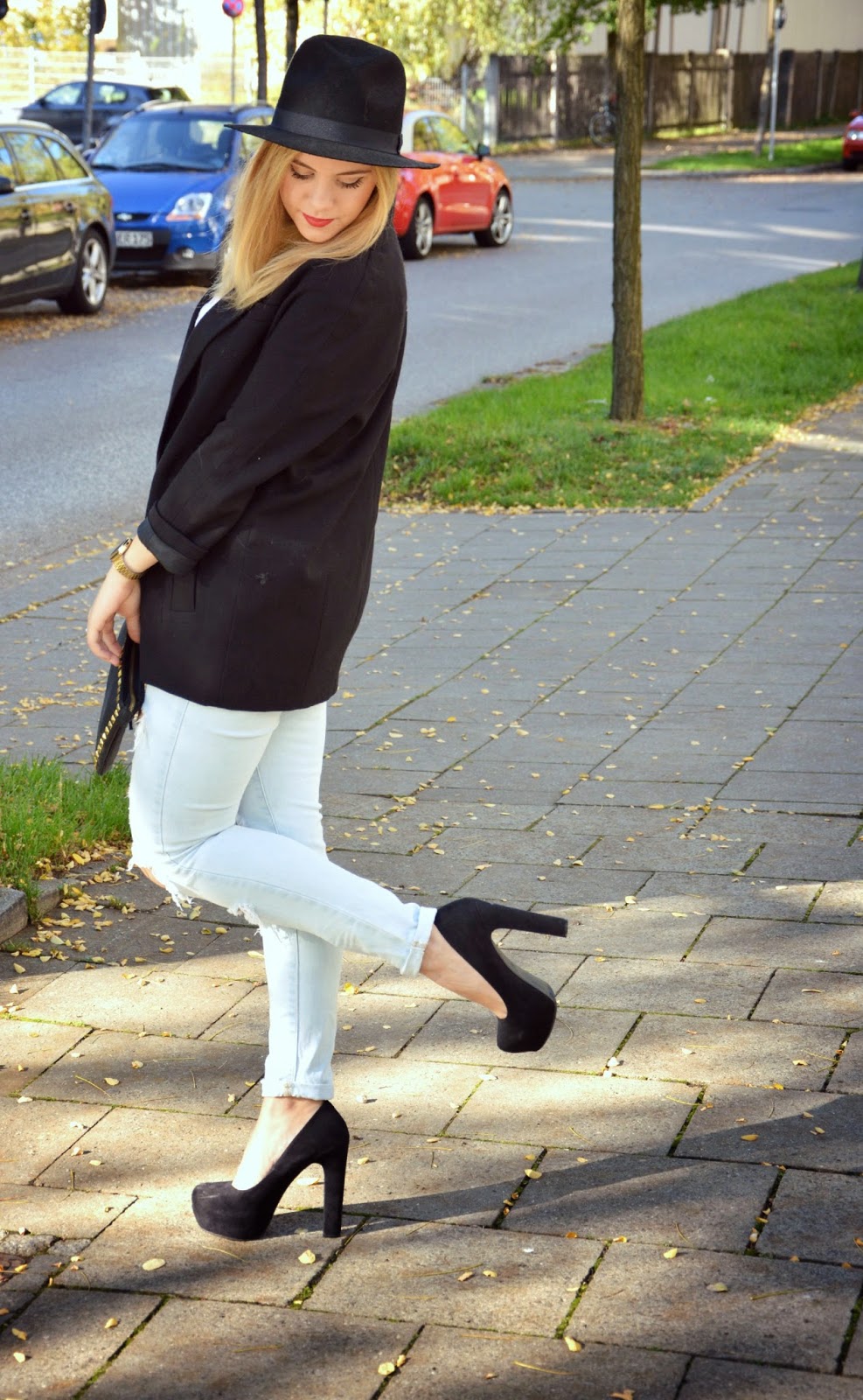 Schuhe, Jacke: h&m, Shirt: New Yorker, Hose: Zara, Hut: Pimkie, Tasche: Vintage, Uhr: Casio