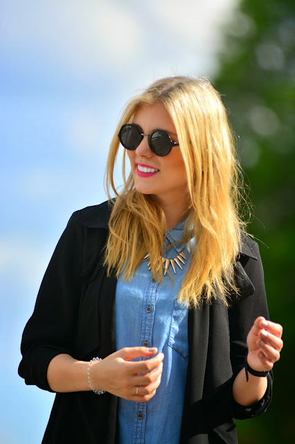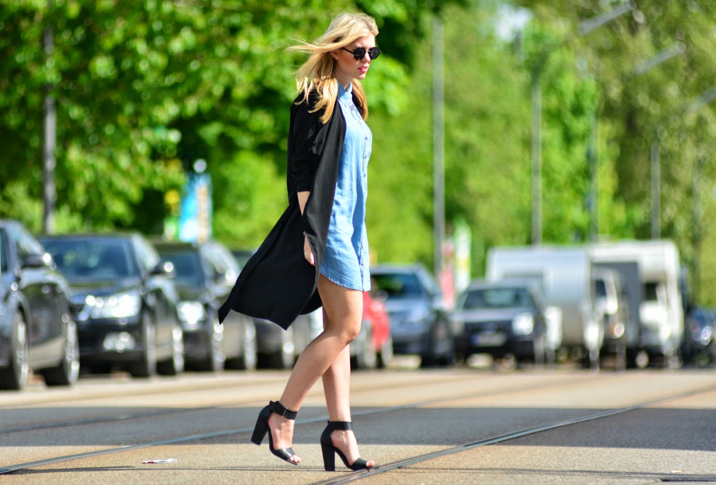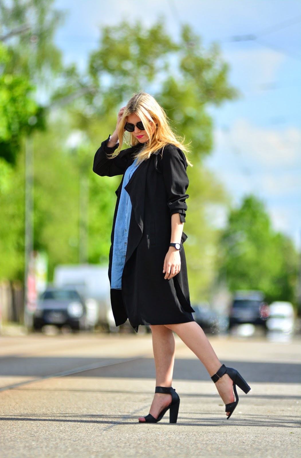Damit will ich natürlich nicht sagen, dass 1 Woche ohne einen Blogpost etwas unglaublich schlimmes ist, aber man sollte sich schon organisieren und zum Bloggen kommen. Ich bin aber letzten Mittwoch nach Hause gefahren und wollte die Zeit dort einfach nur genießen. Das hab ich auch mehr als genug getan, denn das Wetter war absolut top, am Vatertag hatte ich meinen Daddy an meiner Seite (den mit Abstand coolsten Mensch auf der ganzen Welt) und hatte sehr viel Zeit mit meinen Freunden. Jetzt bin ich wieder in meiner neuen Heimat München angekommen und auch hier will mich das Wetter nicht enttäuschen. Um aber wieder auf die eigentlichen Themen dieses Blogs zu kommen (nämlich der Mode) hier mein aktuelles Outfit. Das Jeanskleid hat mich auf den ersten Blick angesprochen und ich musste es natürlich sofort mitnehmen, denn die Kenner unter euch wissen es längst: Jeanskleider sind diesen Sommer nicht mehr wegzudenken. Dazu trage ich meinen Allrounder: meinen superluftigen schwarzen Trenchcoat. Ein paar Sandaletten dazu: fertig ist der City-Look. Wie habt ihr euer (vielleicht langes) Wochenende verbracht? Ich hoffe ihr hattet ebenso erholsame Tage wie euch! Alles Liebe!