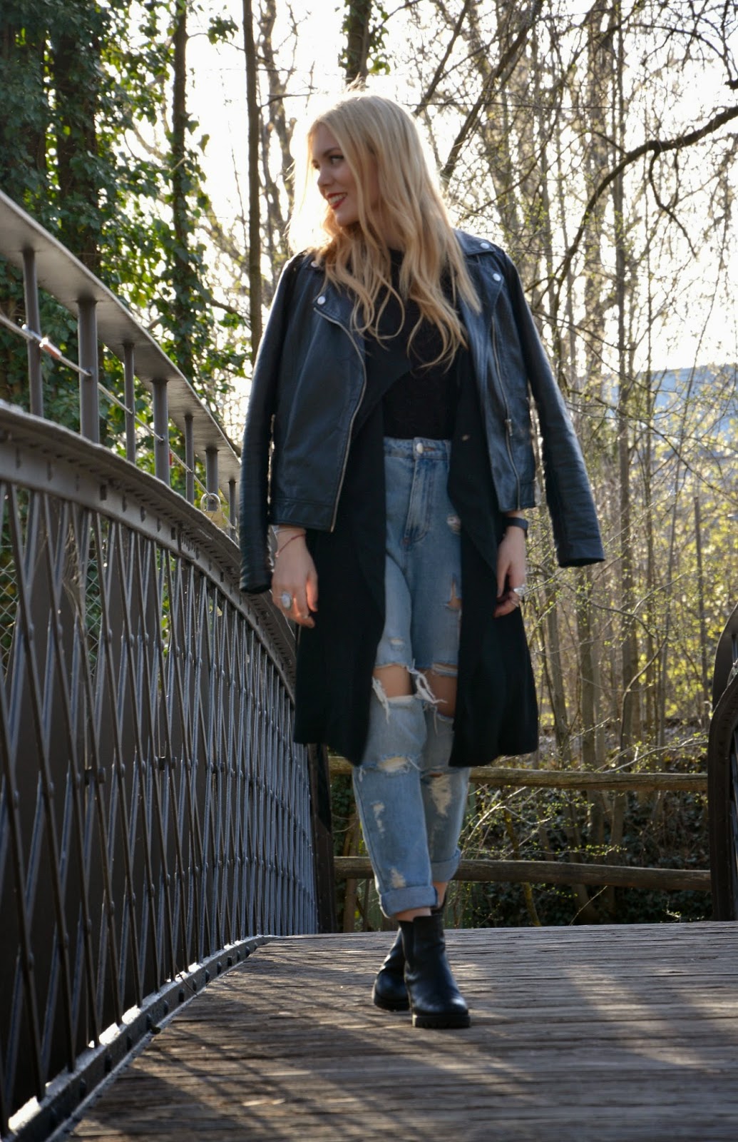 Wer sich jetzt fragt: hä, wer schreibt denn hier? Ja, ich lebe noch. Es war eine relativ lange Blogpause von fast 2 Wochen, i’m so sorry. Ich war viel unterwegs (unter anderem auf der Glamour-Party im Heart) und hatte wirklich viel zu tun, so dass leider kaum Zeit blieb, um Fotos zu machen. Aber heute kommt endlich wieder mal ein neues Outfit. Es ist, wie immer, fast ausschließlich schwarz, bis auf die very destroyed Jeans. Sie sind wirklich kaputt, aber hey, man trägt das jetzt so. Ansonsten darf ich heute ein neues Familienmitglied in meiner Schwarzsammlung vorstellen: ein superschöner Trenchcoat. Ich mag ihn wirklich gerne und dadurch, dass er ein wenig oversize ist, kann man ihn super zu fast allem kombinieren. So. Das wars aber mal wieder mit dem Gequatsche, ich hoffe ihr hattet alle einen ebenso sonnigen Tag wie ich und genießt jetzt noch euren (hoffentlich) freien Abend! Love.