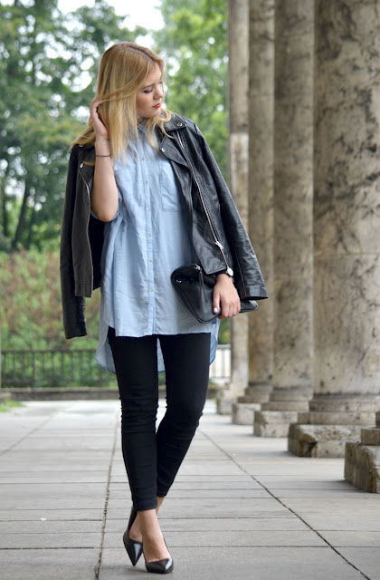 Ein schöner schlichter Look mit den Heels und der Lederjacke auf jeden Fall schön kombiniert 🙂